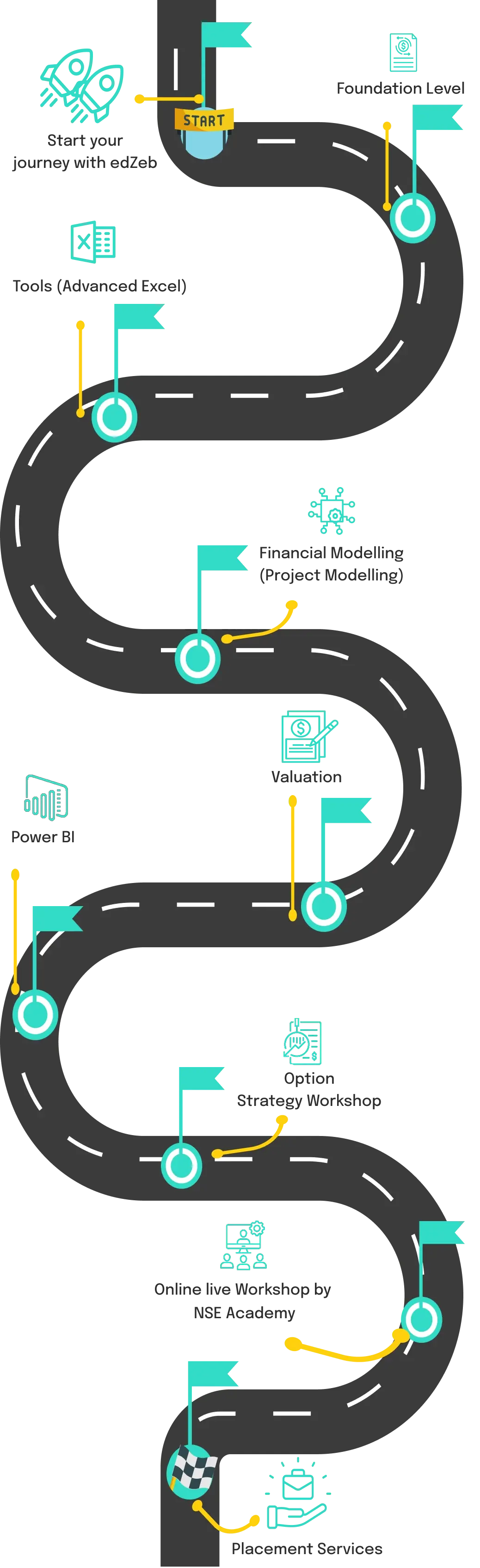 While numerous financial modelling coaching classes in Delhi offer Financial modelling courses with placements, picking one can be a nerve-wrenching task. At edZeb, our goal is to support you in making wise choices by offering you guidance and transparency. So, what are you waiting for?